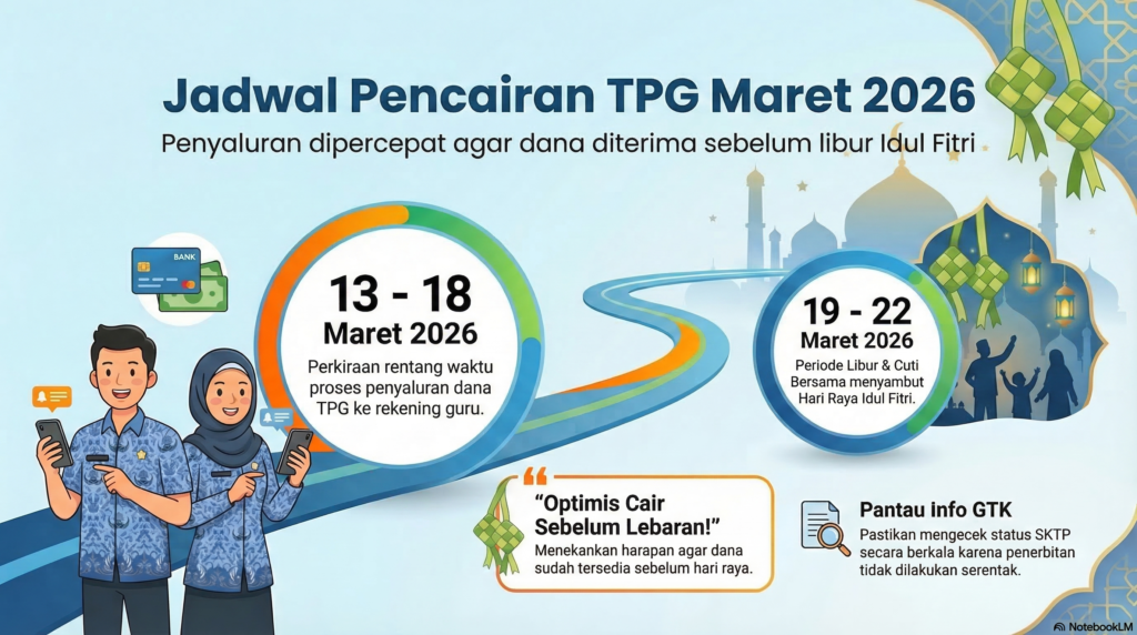 • March 15, 2026 by shandadhiman Jadwal Pencairan TPG Maret 2026: Kabar Gembira Cair Sebelum Lebaran!